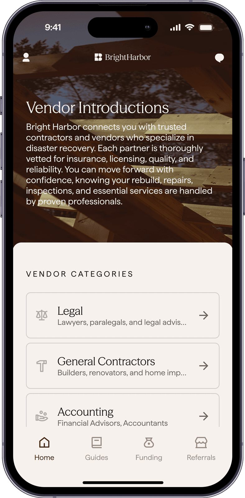 Trusted help is critical to getting back to your life, fast. We vet vendors so survivors don't have to.