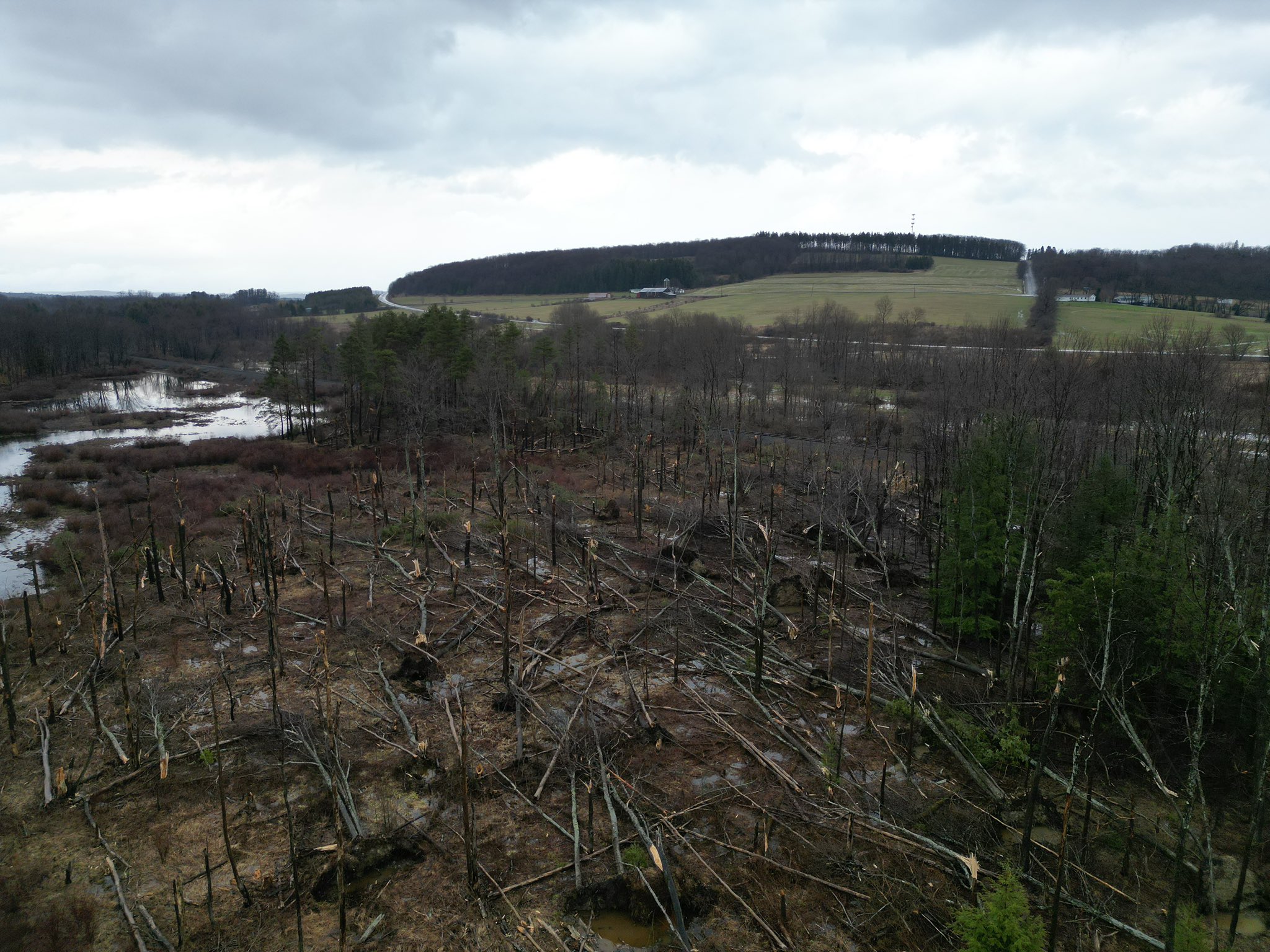 Tornado damage in Machias, NY. Source: BuffaloWeather (@weather_buffalo), X post, March 2026