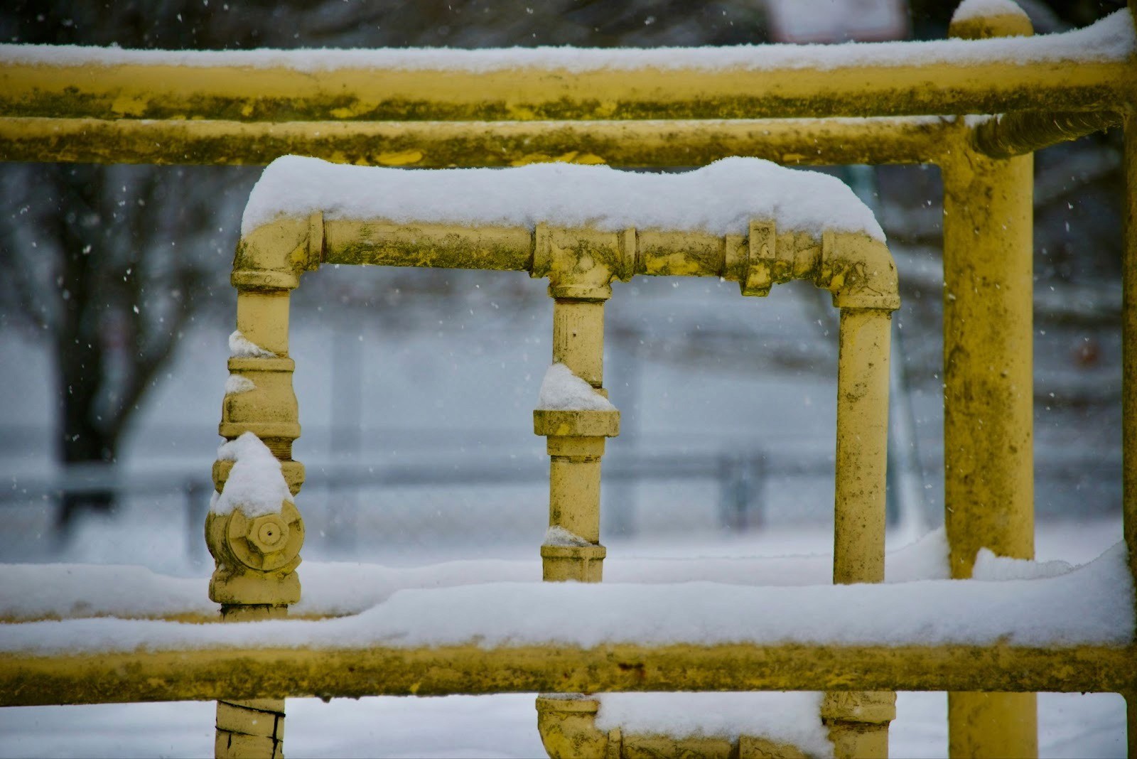 During the freeze, let your indoor faucets drip slightly—both hot and cold water spigots, since moving water is less likely to freeze. Open cabinet doors under sinks to allow warm air circulation around pipes as well. Keep your thermostat at the same temperature day and night, even if you're trying to conserve energy. The cost of burst pipes far exceeds any heating savings.