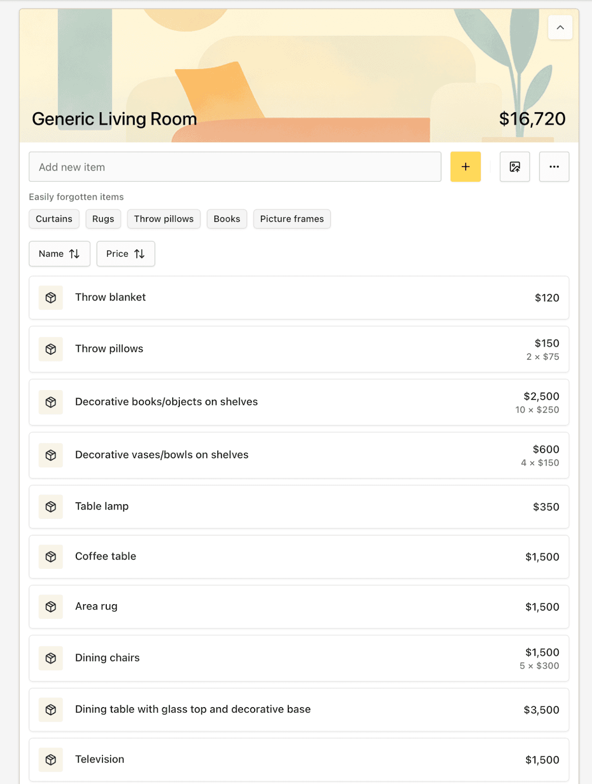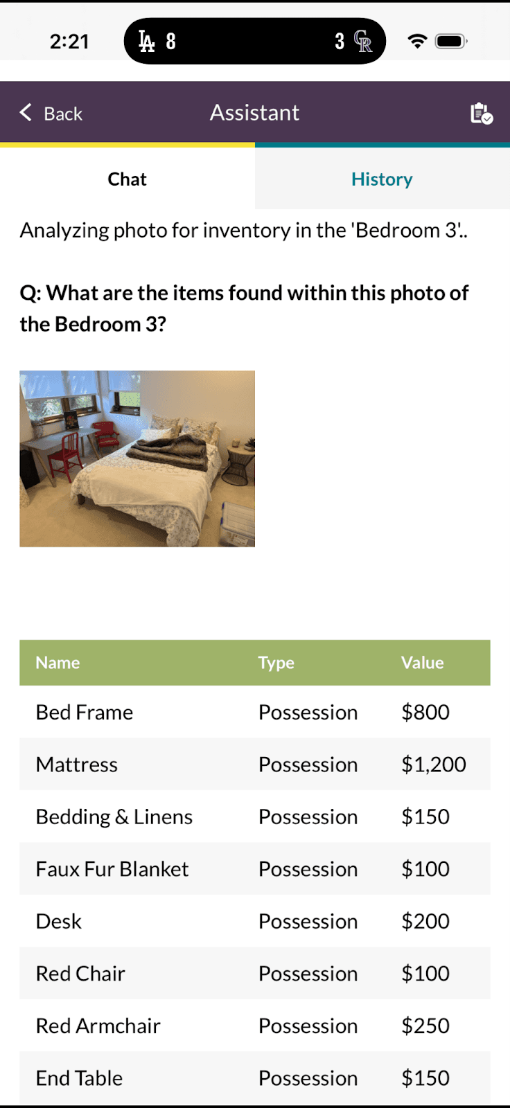 The inventory tools on their mobile app work by uploading a wide-angle photo of a room. In seconds, HomeZada will use object recognition to list everything it can see in the photo along with an estimated price for every item.