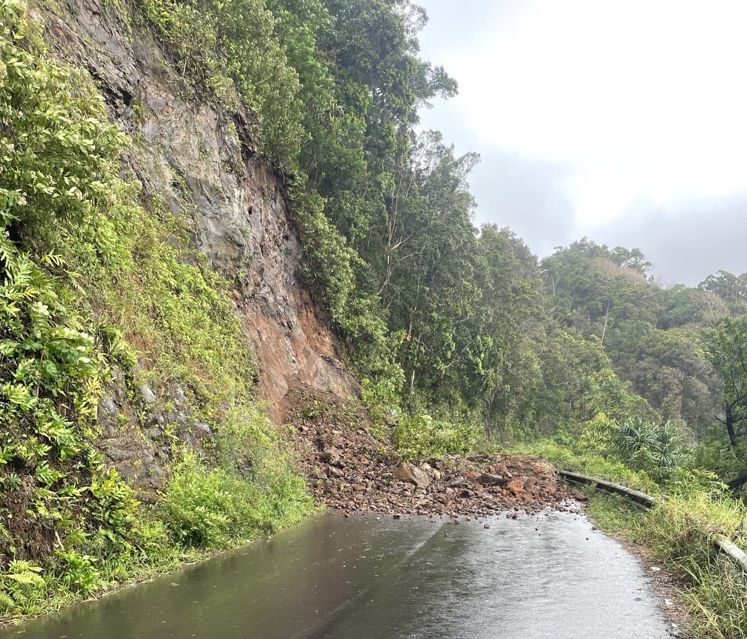 A landslide blocking both lanes in Hawaii. Source: Hawaii Department of Transportation